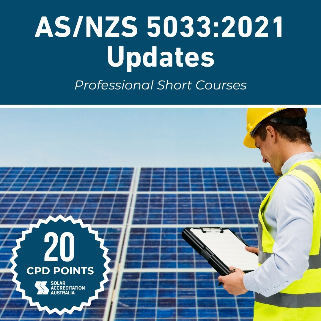 The AS/NZS 5033:2021 is an online video-based course that provides an overview of the key AS/NZS5033:2021 changes to safety and PV system regulations. It also guides you through calculation, signage and documentation changes which could impact your system. The course is particularly relevant for designers and installers in which compliance is mandatory given state regulators approval of the new regulations.
