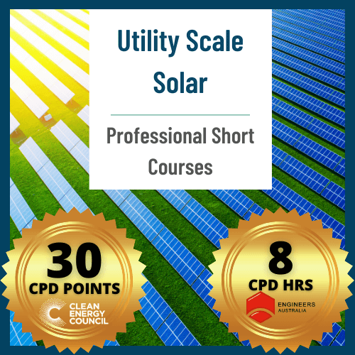 Students will receive a GSES certificate of completion stating they have completed the Utility Scale Solar course. Upon completion, CEC (Clean Energy Council) accredited designers/installers will be eligible for 30 CPD points.