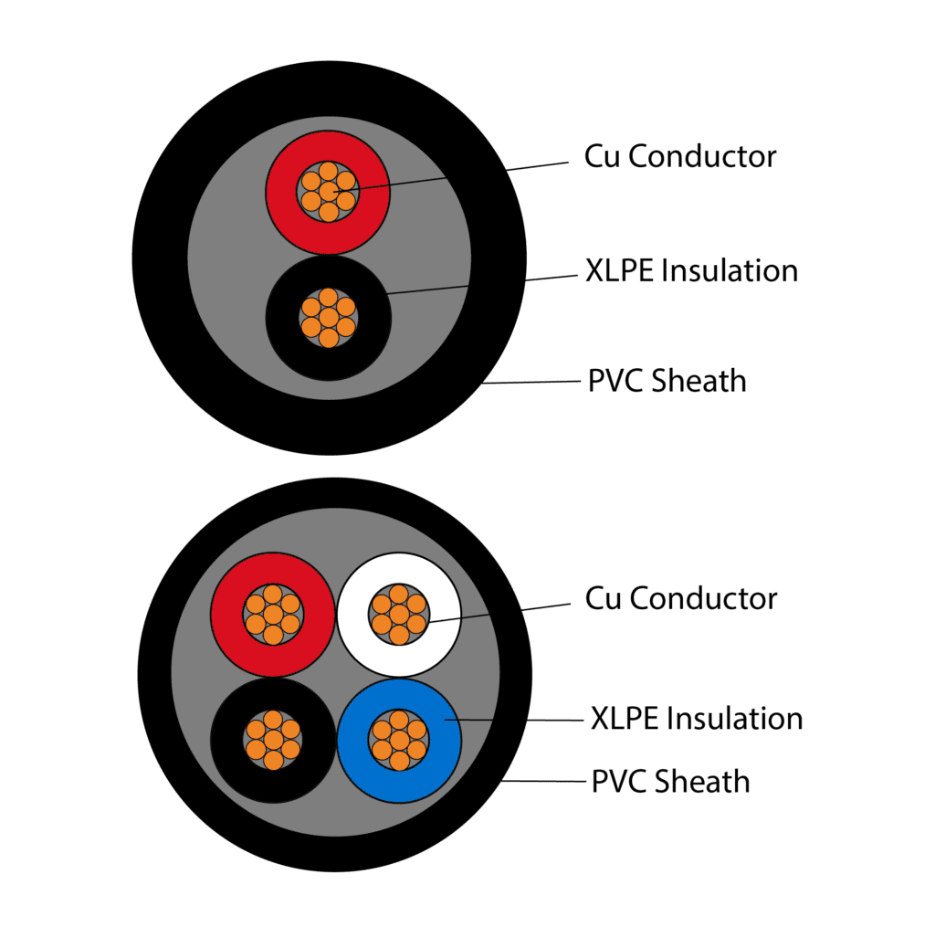 The types of cable insulation also play an important role is determining the cable current carrying capacity and its ability to withstand harsh environmental temperatures; a 90°C rated insulation will have a higher current carrying capacity than a 75°C insulation. Therefore, if the installation will be exposed to high temperature but a high current carrying capacity must be maintained, its ideal to use the higher rated cable insulation so cables do not melt under normal operating conditions.